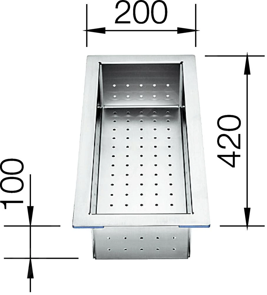 Con esta cubeta para fregadero, tu fregadero será perfectamente práctico. Te servirá bien para guardar los cubiertos, almacenar las verduras limpias y como lugar ideal para las hierbas lavadas. La cubeta está fabricada en acero inoxidable de alta calidad y sus dimensiones son 420 x 200 x 100 mm.