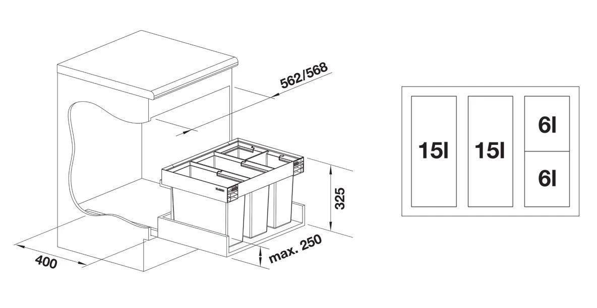 Blanco Flexon II – Papelera Incorporada, Dividida, Volumen 42 L 526644