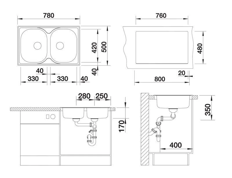 Blanco Tipo 8 – Fregadero, 780×500 Mm, Acero Inoxidable 513459