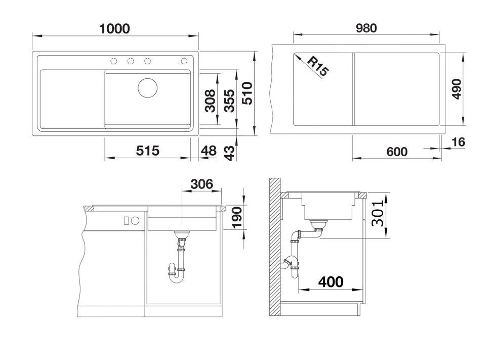 - dimensiones del seno de fregadero 515 x 355 mm