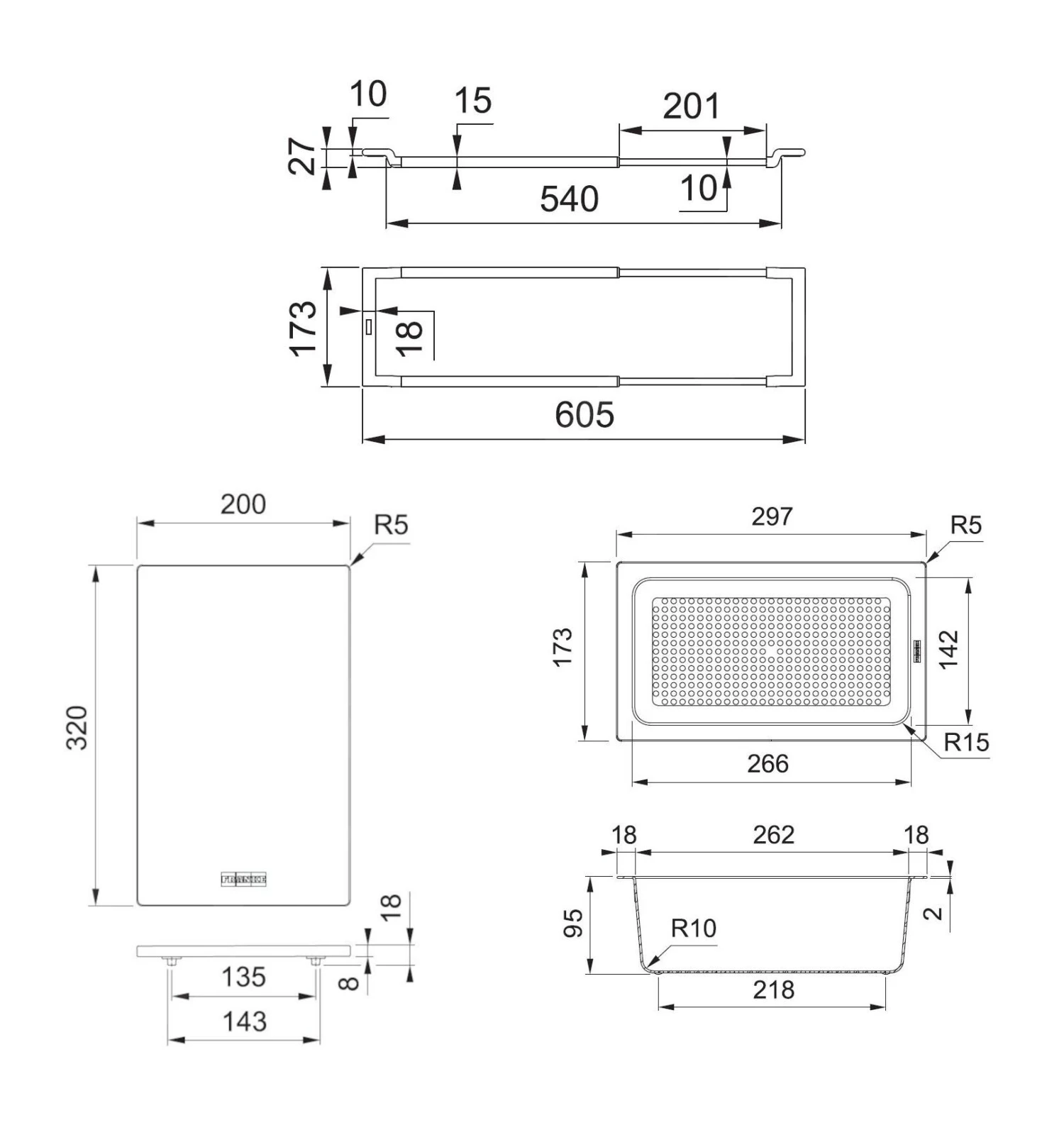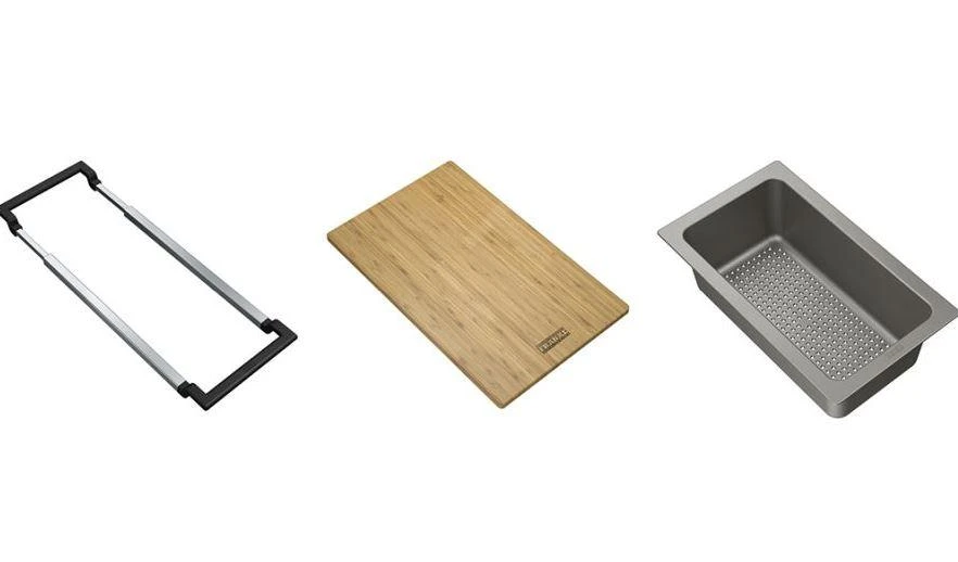 - 1x soporte telescópico, se puede ajustar a la longitud/anchura del fregadero (dimensiones hasta 540 mm)