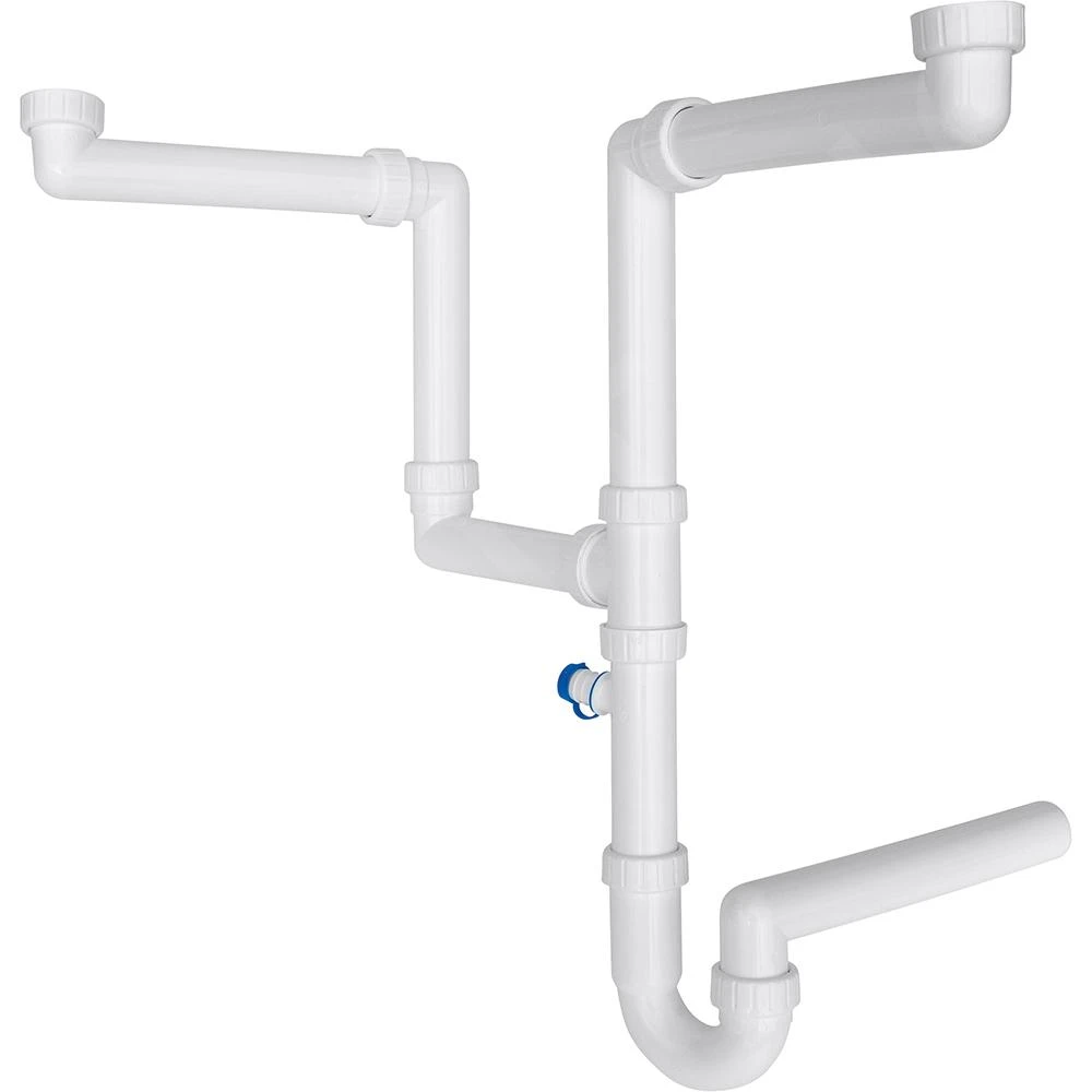 F3L – conexión de desagüe que ahorra espacio y que incluye sifón con conexión para lavavajillas