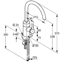 El control se realiza mediante una palanca bien diseñada. Se puede girar a la posición de ahorro de agua, con lo que se ahorran muchos litros de agua. El cuerpo del grifo es de metal y tiene un acabado de cromo brillante.