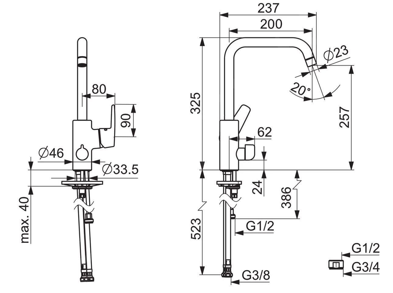 - brazo de caño giratorio, posibilidad de limitar el rango de rotación