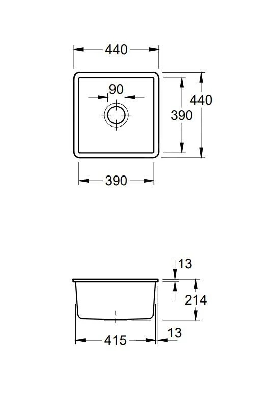 - dimensión total del fregadero: 440 x 440 mm